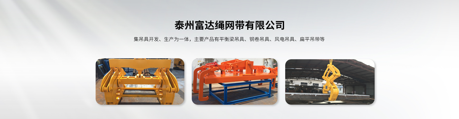 泰州市富達繩網帶有限公司是吊具開發、生產為一體的生產廠家,主要產品有平衡梁吊具、鋼卷吊具、風電吊具、扁平吊帶等。